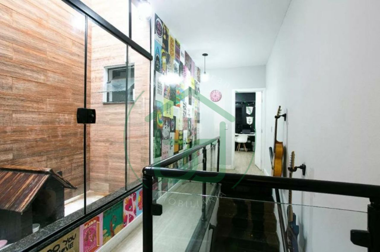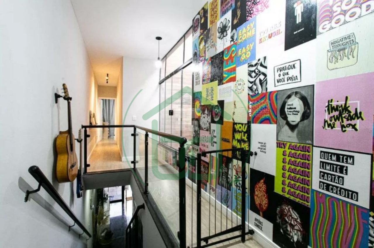 No pavimento superior encontram-se 3 dormitórios, sendo 1 suíte, além de banheiro social e um charmoso jardim de inverno que proporciona iluminação natural e ventilação aos ambientes.